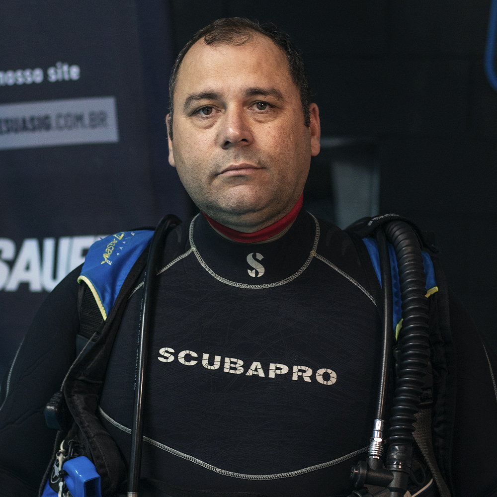Marcelo Nogueira é Instrutor de Mergulho e possui Especialização em Open Water, Nitrox, Mergulho de Segurança Pública, Busca em Casco de Navio, Mergulho em Águas Contaminadas e Curso de Operações Especiais.